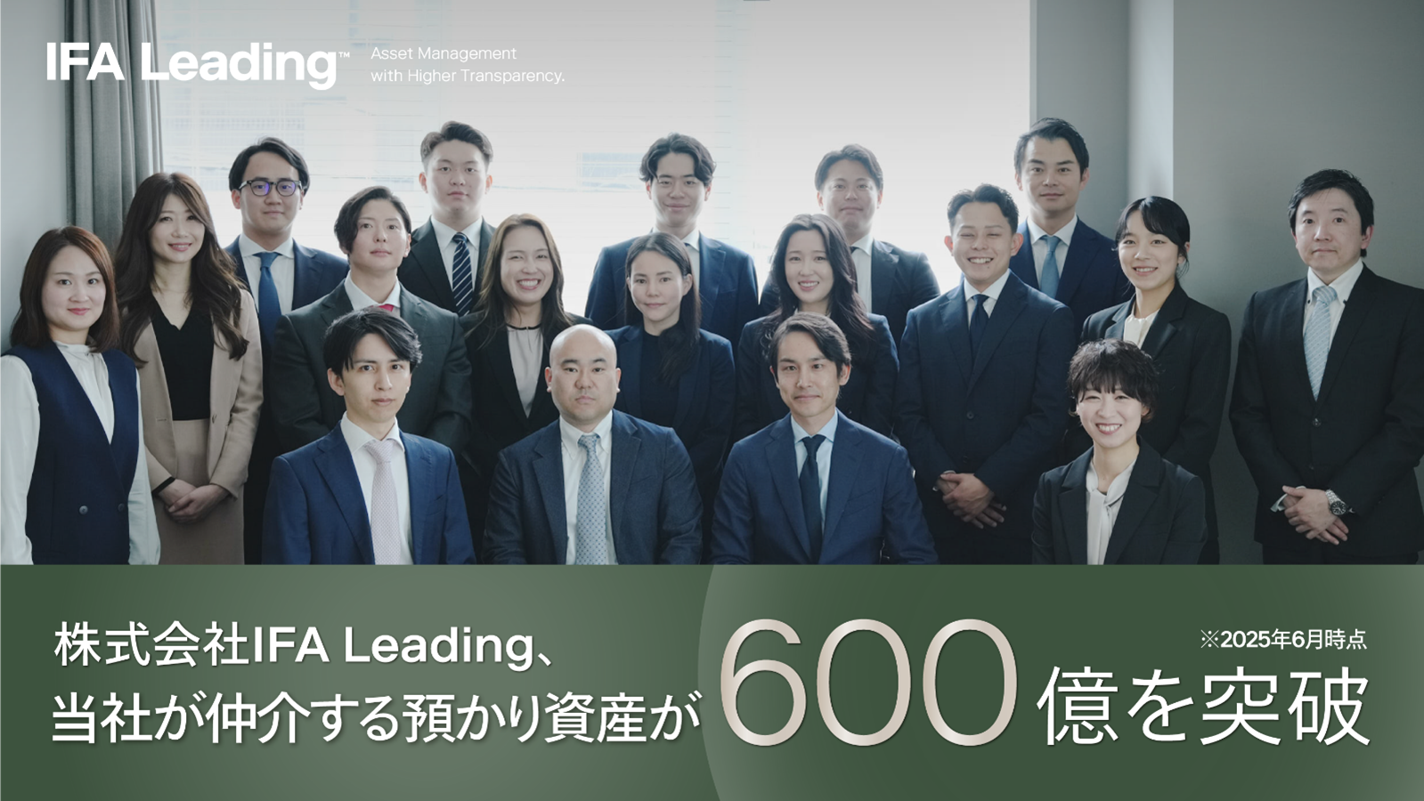 独立系ファイナンシャルアドバイザー(IFA)法人として日本の金融サービスの変革を目指す株式会社 IFA Leading (本社:東京都渋谷区、代表取締役:長谷川 学)は、サービス提供開始から約3年となる2025年6月時点で当社が仲介する預かり資産が600億円を突破したことをお知らせいたします。